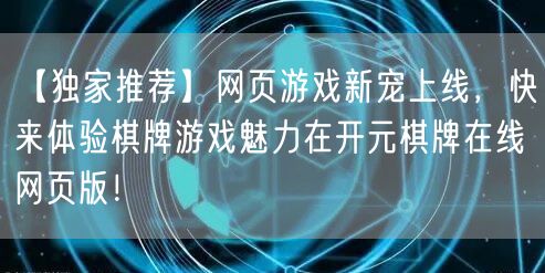 亲爱的游戏爱好者们,好消息来啦!开网络科技有限公司独家推出的网页游戏新宠已经正式上线,这是一个充满魅力的棋牌世界等待你的探索!在这里,你可以随时随地享受各类棋牌游戏的乐趣,一切尽在在线网页版。